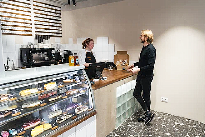 Мимо пройти невозможно– сквозь витринные окна видны манящие чизы всех оттенков... и вот ты уже внутри, выбираешь из 12 видов чизкейков самый заветный.